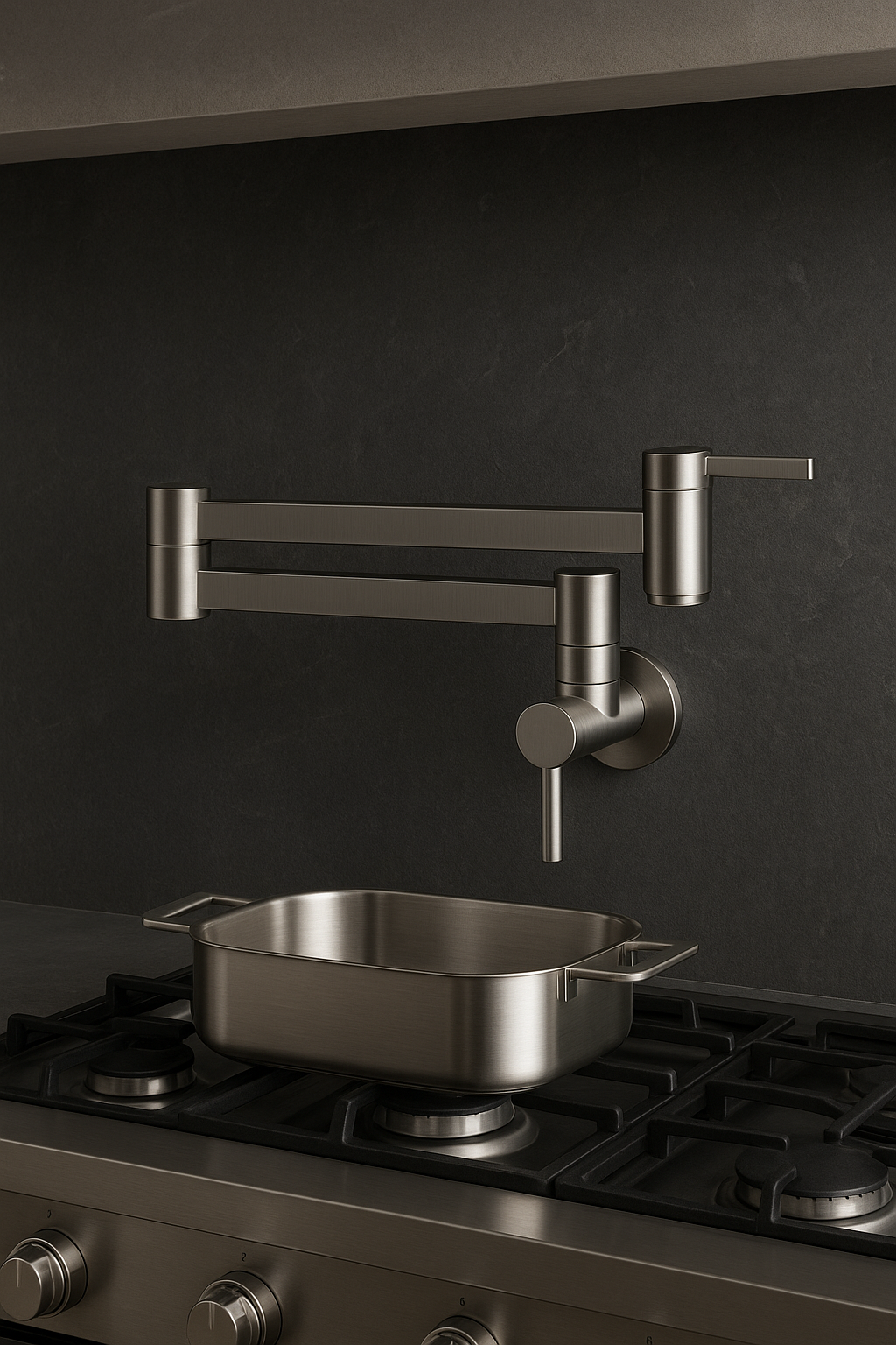 دیگ پرکن یکی از لوازم کاربردی آشپزخانههای مدرن است که معمولاً بالای اجاق گاز نصب میشود. این وسیله با اتصال مستقیم به لوله آب، امکان پر کردن قابلمه و دیگهای بزرگ را بدون نیاز به جابجایی سنگین از سینک به اجاق فراهم میکند.